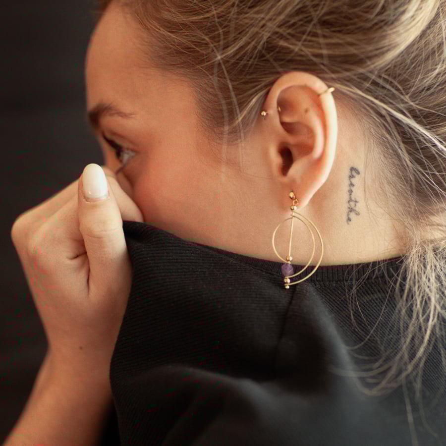 Pendientes realizados en latón. Los pasadores de los pendientes son de acero inoxidable, antialérgicos.