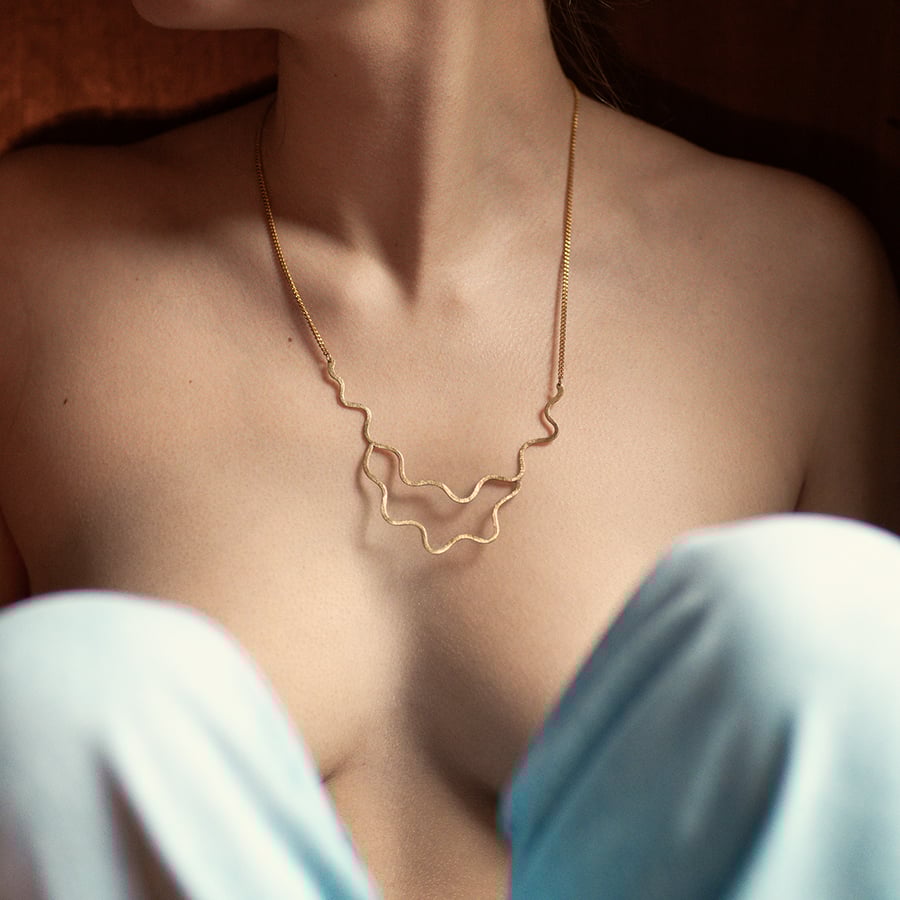 Collar corto realizado en latón. Cadena de latón y cierre de rosca.